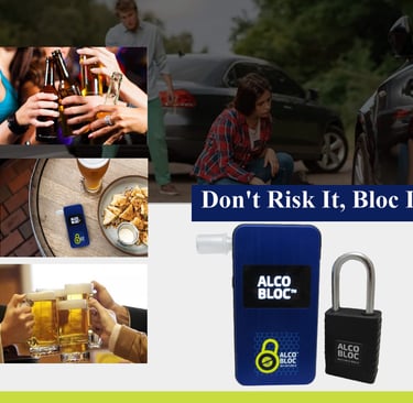 The device is powered by a custom Smart Phone app that syncs a portable, precise breath tester with a robust padlock via Bluetooth. Once the padlock is secured to the object to be safeguarded, the padlock will only open if a negative breath test is provided. AlcoBloc™ was designed to be: